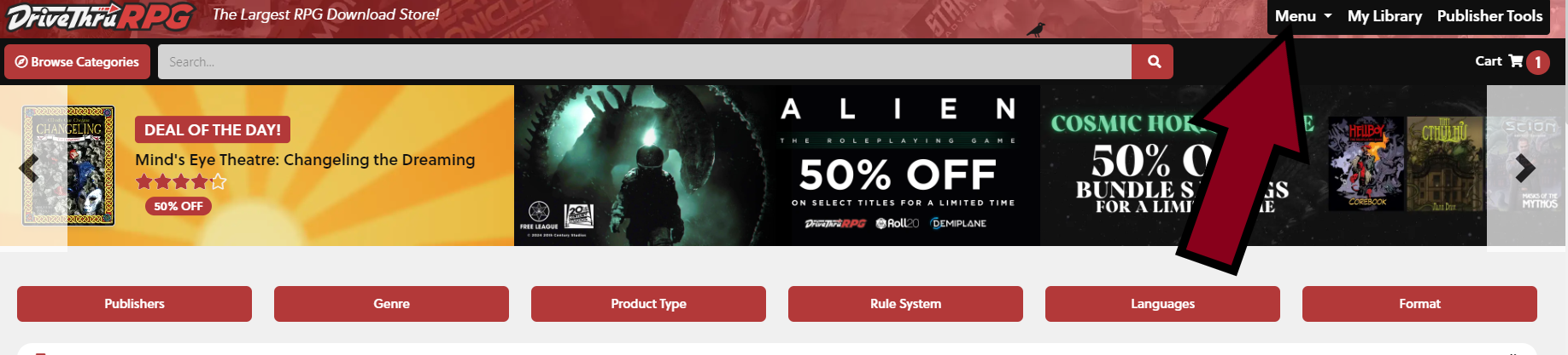 - Klicke auf den Knopf " Menü" oben rechts auf der Seite.